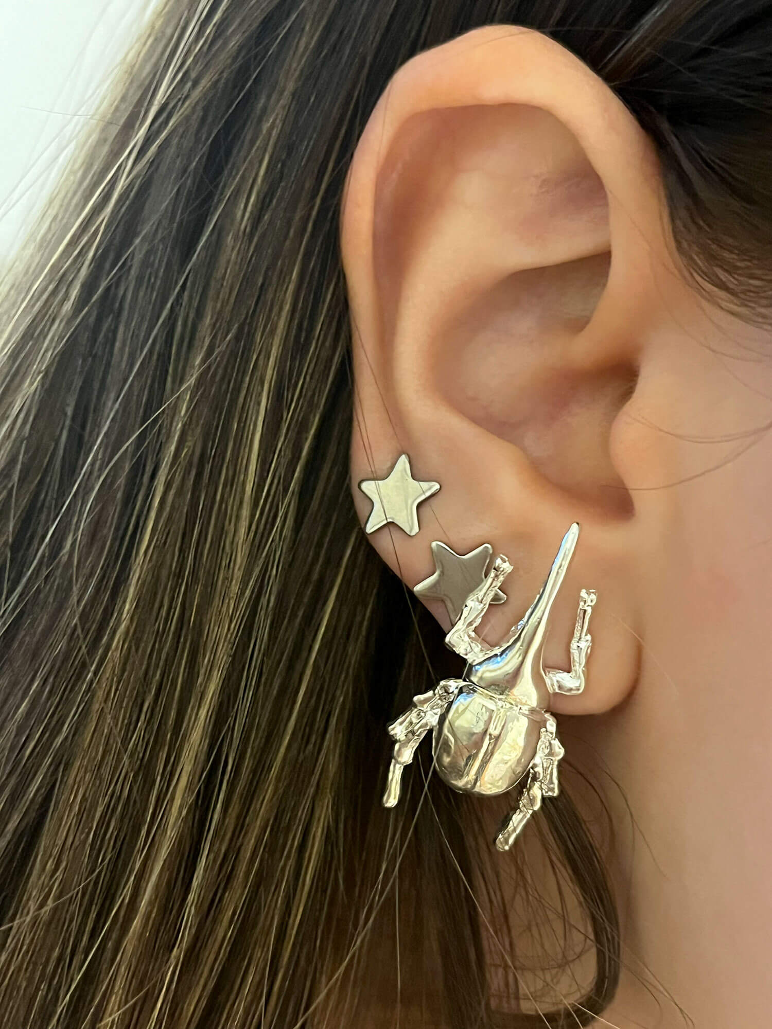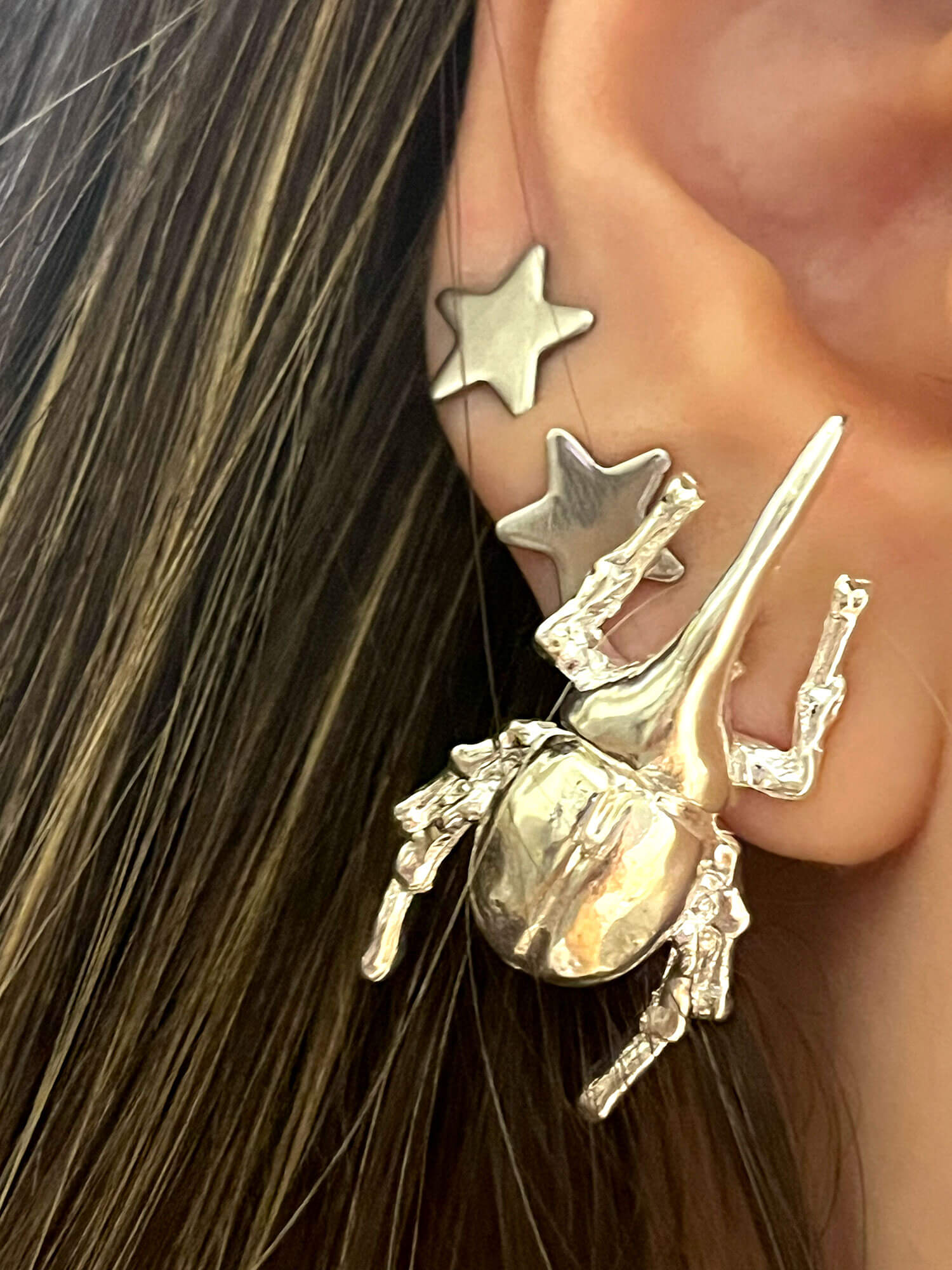 Aretes Escarabajo Plateado